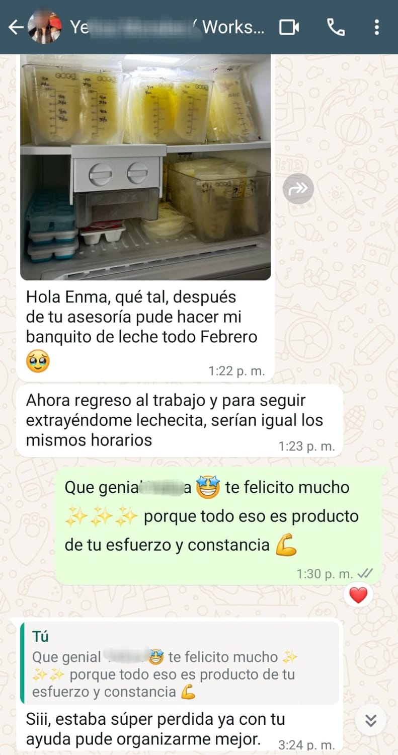 Crearás tu plan de banco de leche, definirás cuántas extracciones necesitas y sabrás exactamente cómo seguir con tu lactancia cuando regreses al trabajo.